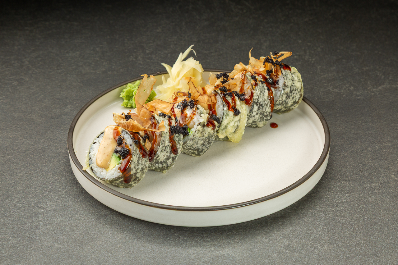 Хрустящая золотистая корочка, которая скрывает нежный, сладковатый морской гребешок с бархатистой текстурой. Контраст горячей темпуры и сочной начинки делает вкус объёмным, деликатным и по-настоящему притягательным.