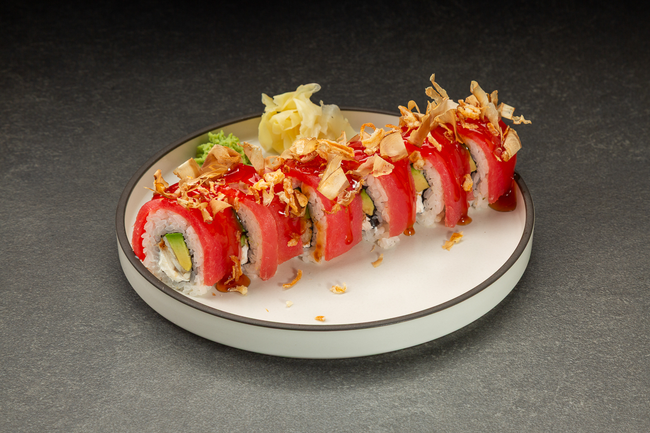 Чистый вкус тунца без лишнего, где нежное филе раскрывается свежестью и лёгкой морской сладостью. Минимализм ингредиентов подчёркивает текстуру рыбы, делая каждый кусочек сбалансированным, сочным и элегантным.